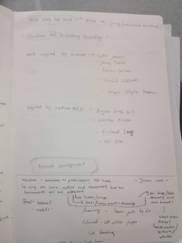 I wanted to use this project to my advantage and find artist who work with aspects of what I’m trying to achieve and use material wise. I used artist such as Damien Hirst, Andy Goldsworthy and Rosa de Jong. These artist I felt were most influencing in my development for this project.