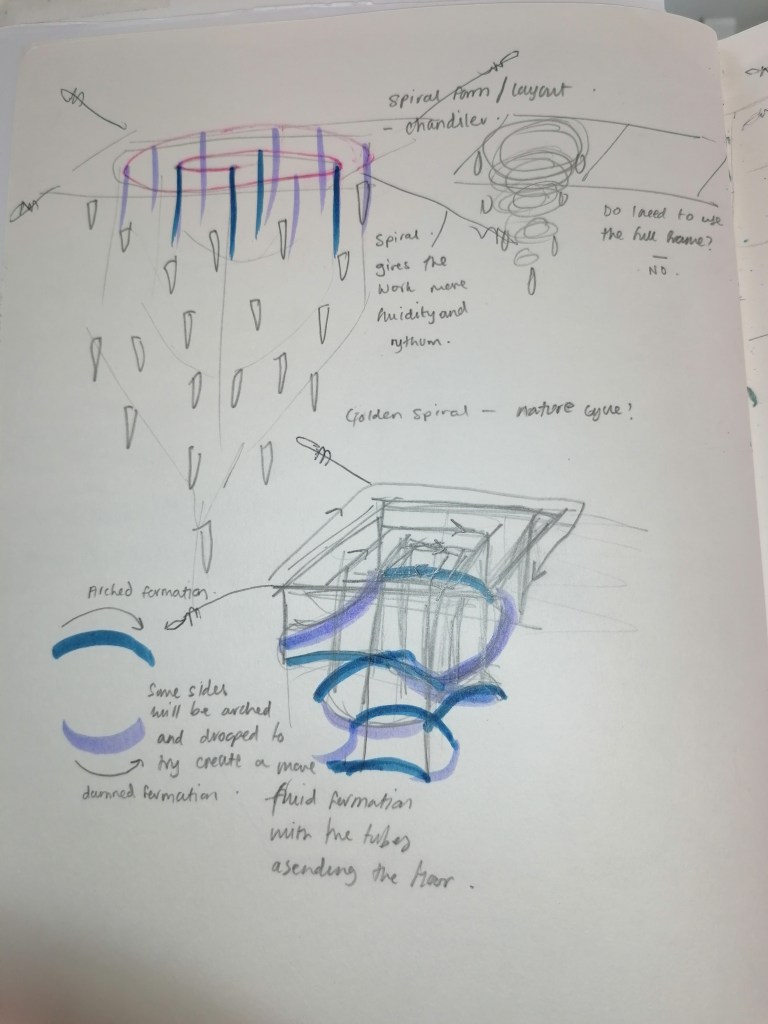 I would say that in terms of improvement and further development, I would love to see this artwork in a much larger scale, to possibly which the tubes were the scale of a person or just even having more tubes to add to the spiral.