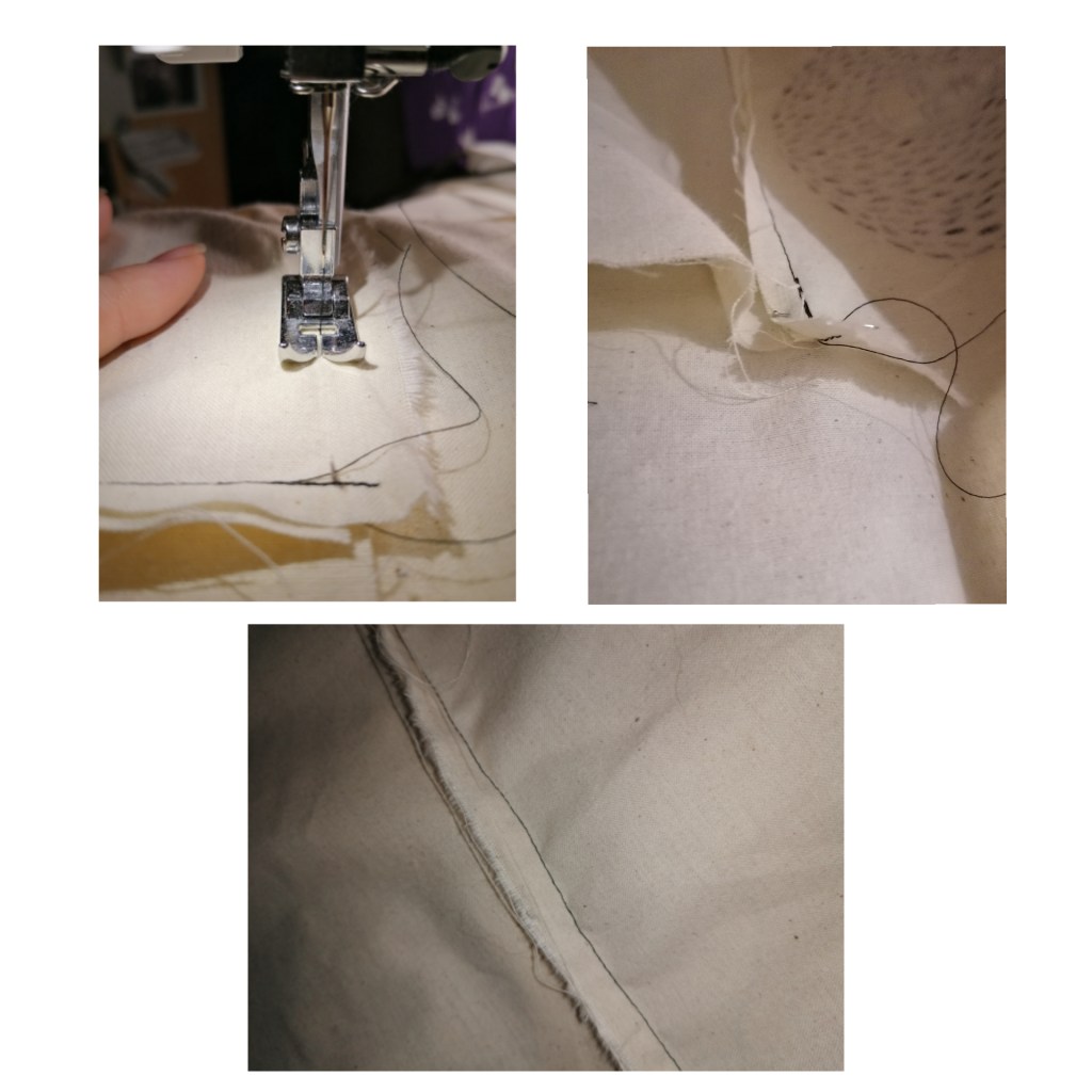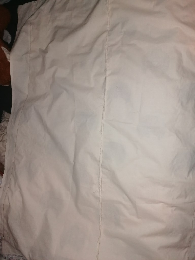 Because I want to stuff the blanket, I started making a back for the blanket. Which I will tack to the portraits side of the blanket front to front so the stich will reman hidden, and create a sleeve to stuff the blanket I ordered into it. Sewing such big pieces of fabric like calico was quite difficult to drive through the sewing machine because it’s a really tough material and it’s got a weight to it, but in the end, there wasn’t really any problems when sewing other than that.