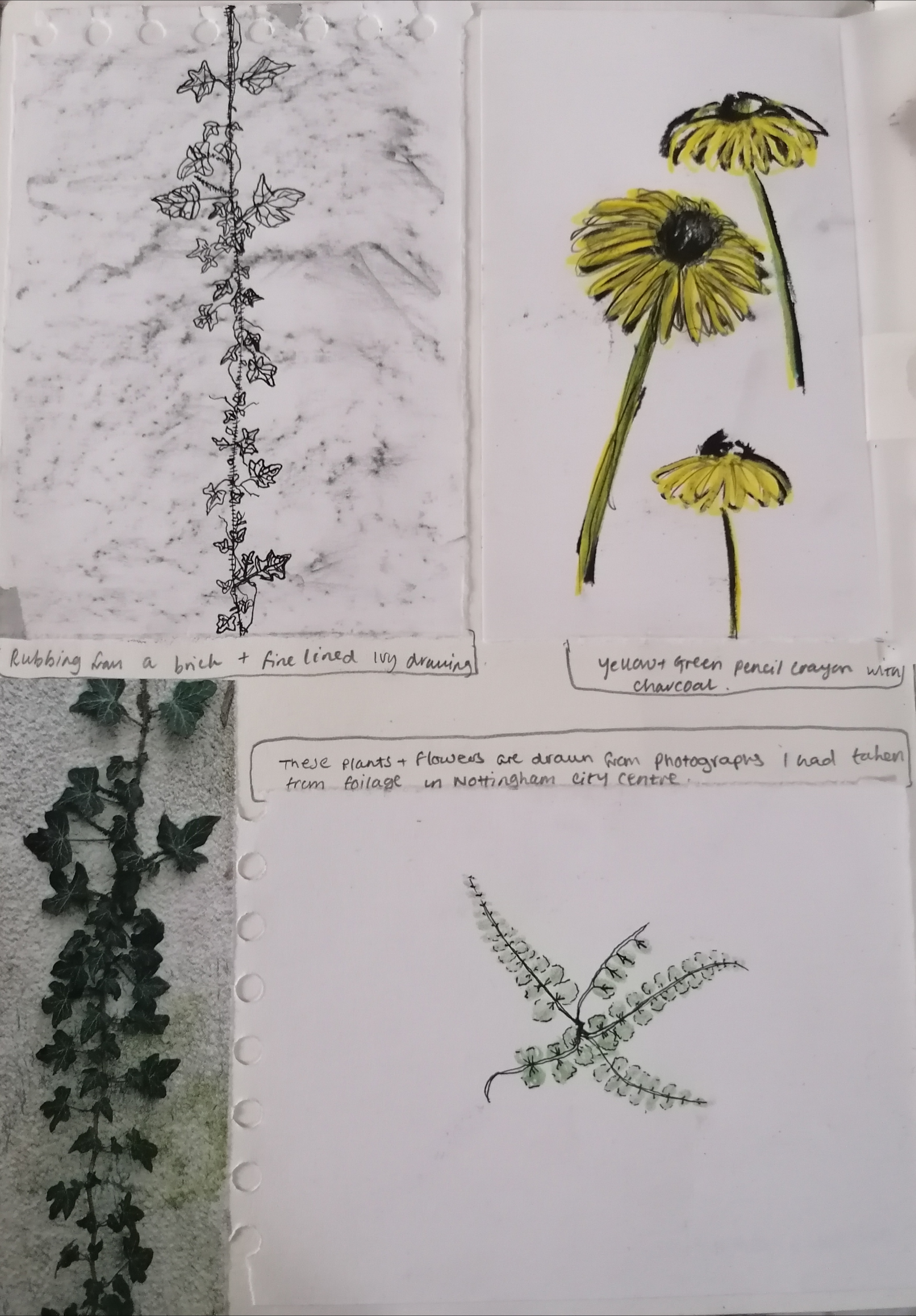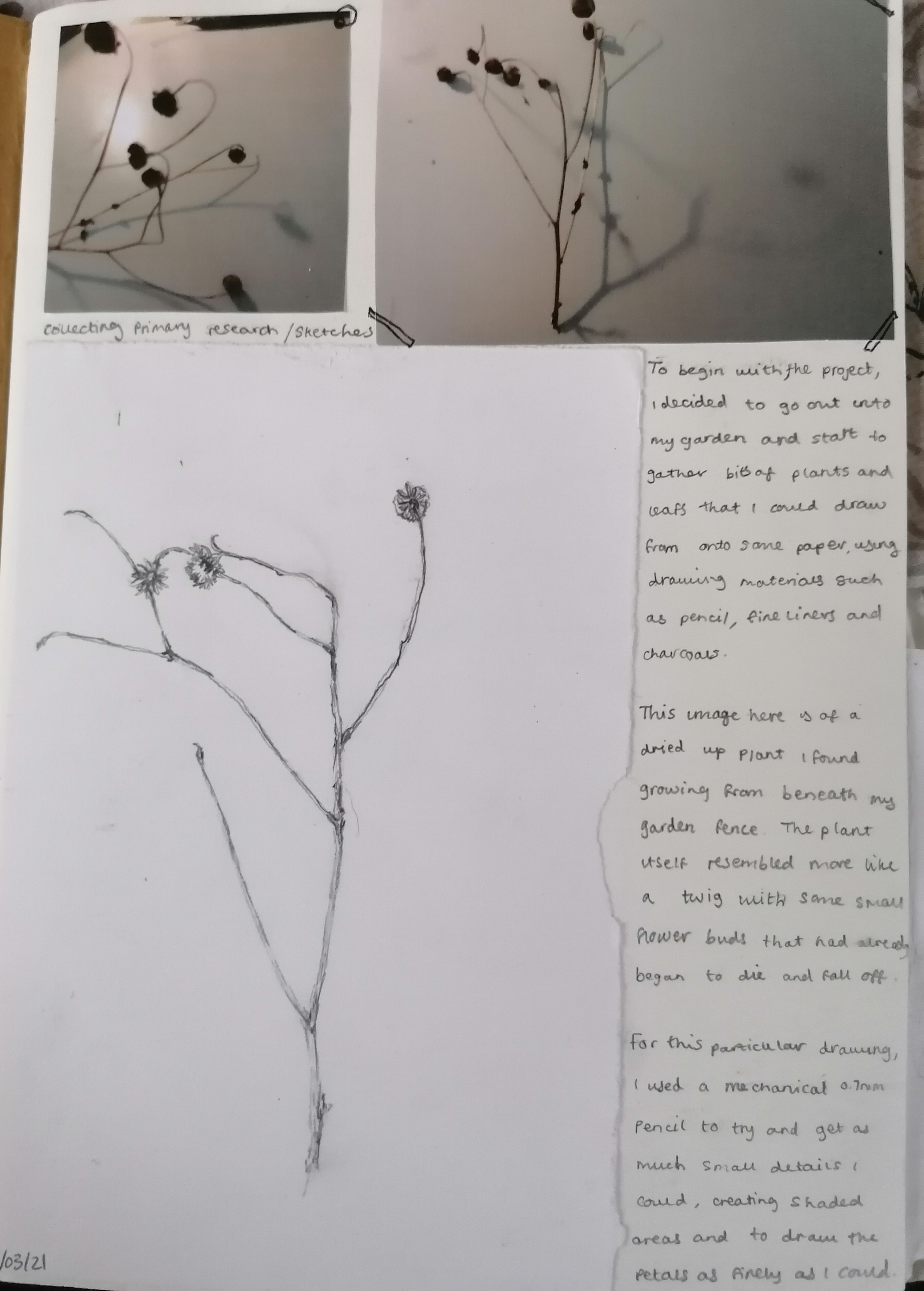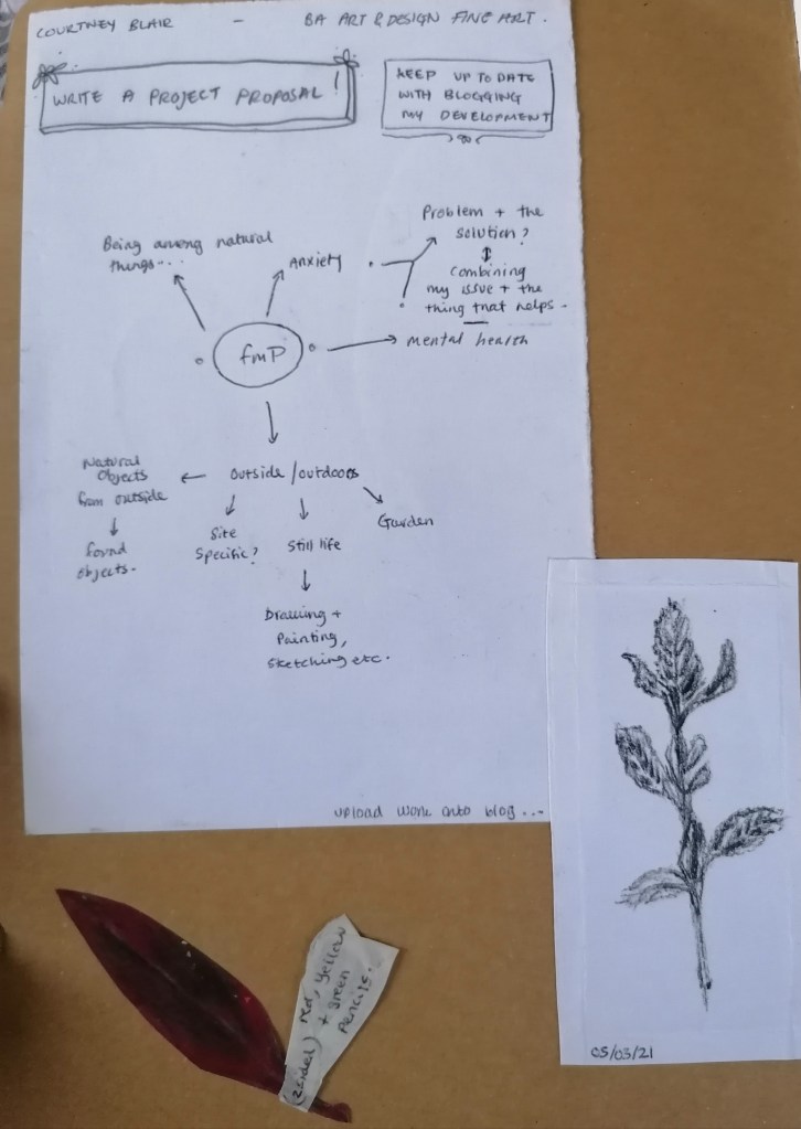 I found that doing this was beneficial in a way to my mental state because I had set myself small tasks to go out and make simple drawings of these natural objects that I could achieve to actually do. To which my well-being began to improve at a good rate.