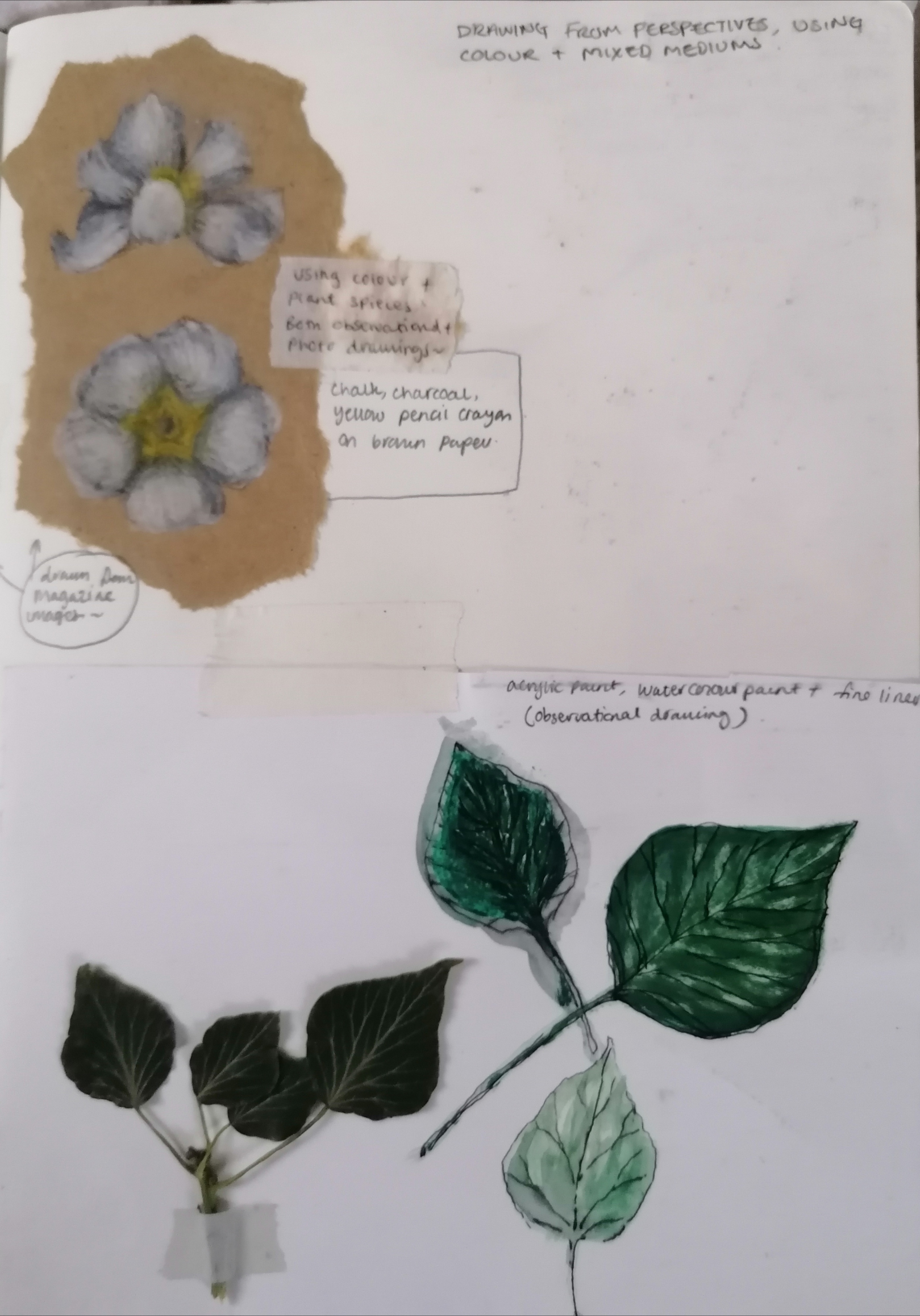 I started to draw out some small illustrations of plants and twigs that I had come by on a walk to relieve some stress, using a range of drawing material such as pencils, pens, charcoal, crayons and then progressed onto using paints.