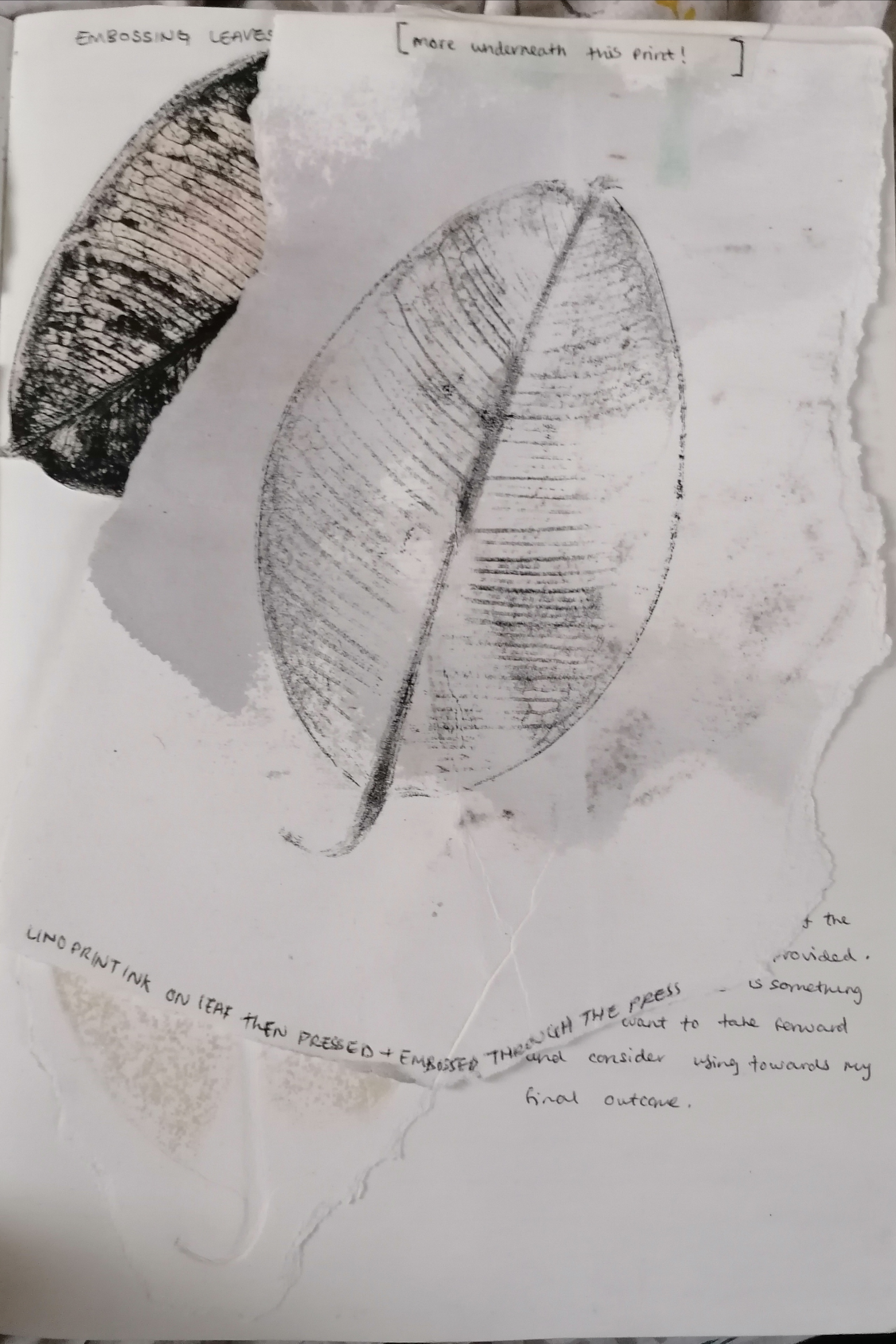 I think that there is potential to develop pressing leaves into or onto other materials and backgrounds. I think that some of the outcomes that I’ll get could possibly play a big part into my development for a final idea piece of work.