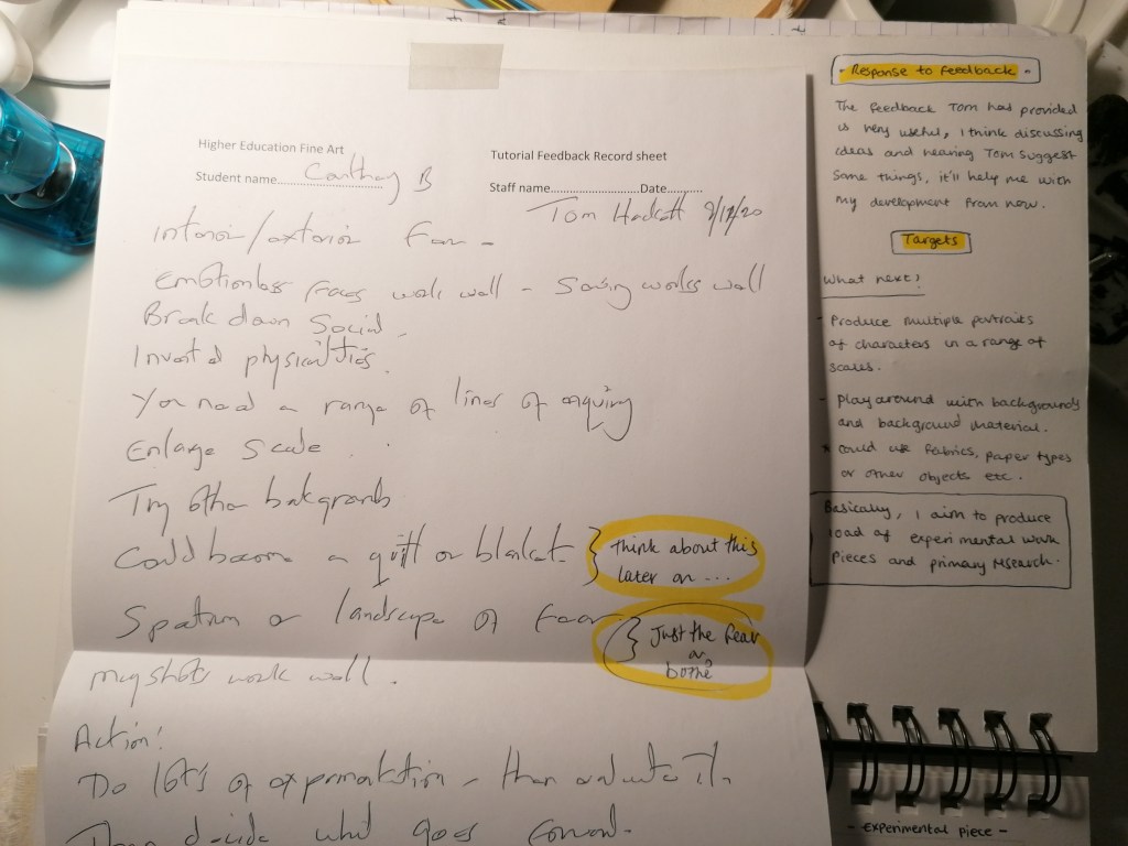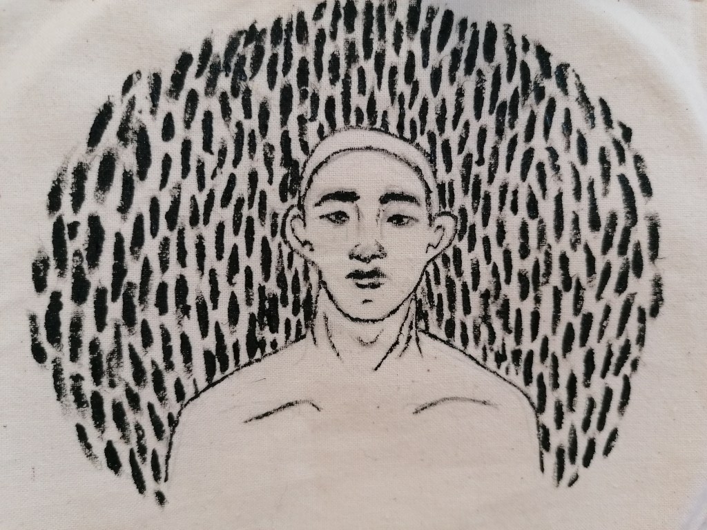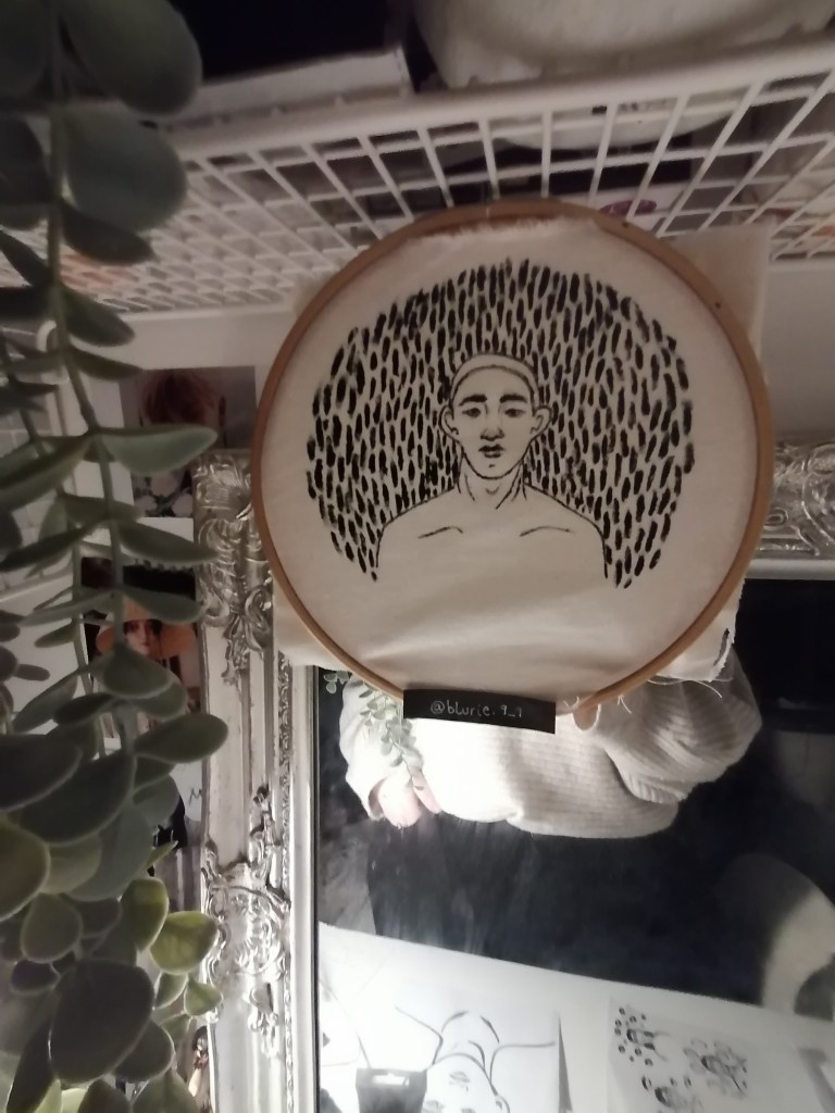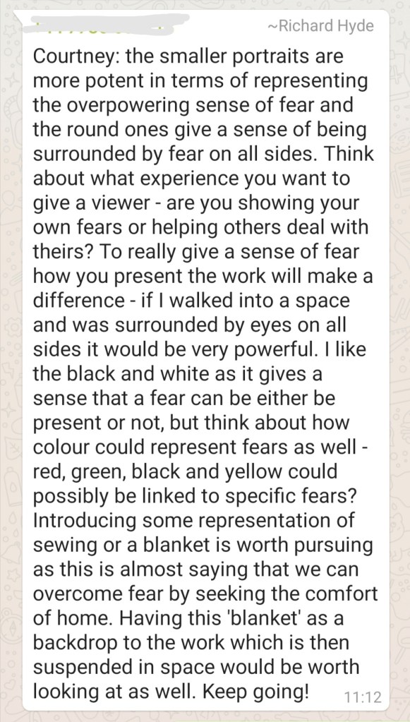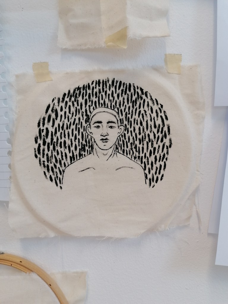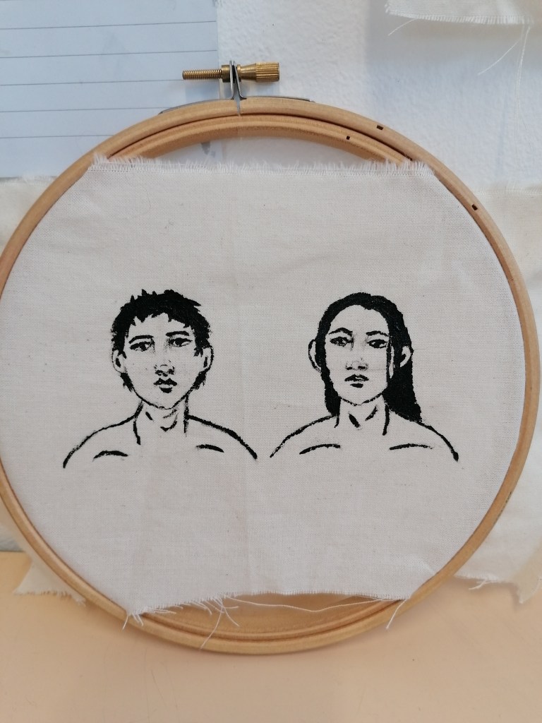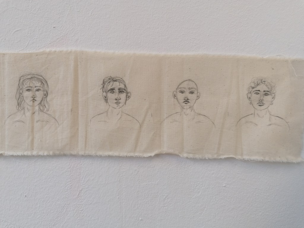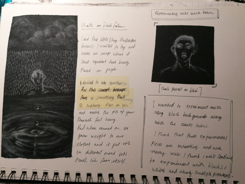 With this portrait, I tried something completely different to what I have been doing so far. What I was trying to interpret in this piece was kind of like a fear version of ourselves? So I made the portraits reflect themselves and painted the in more realistic tones by adding the shading areas and darker tones in places.