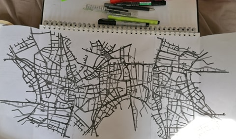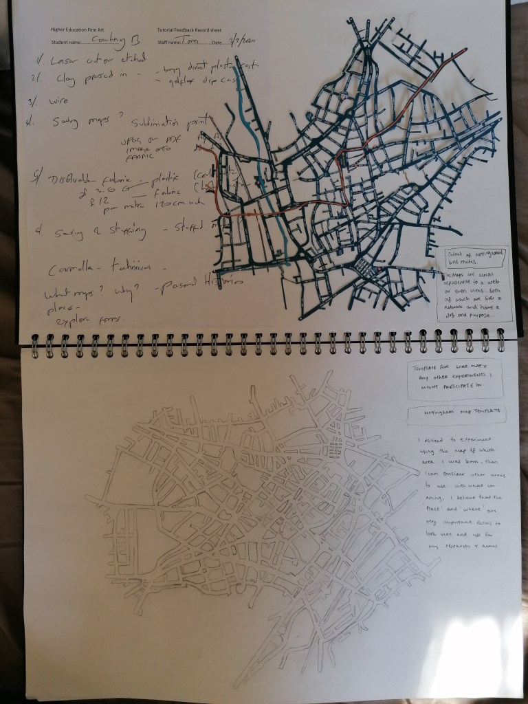 you could say that the map outcome is a relation to my outcome as a person. visibly its an interesting piece but also confusing to look at. my thoughts have gone into the making of the work and i would say that its a small extracted part of me that I’ve created from my views and thoughts on my personal history with Nottingham and how I’ve dealt with it.