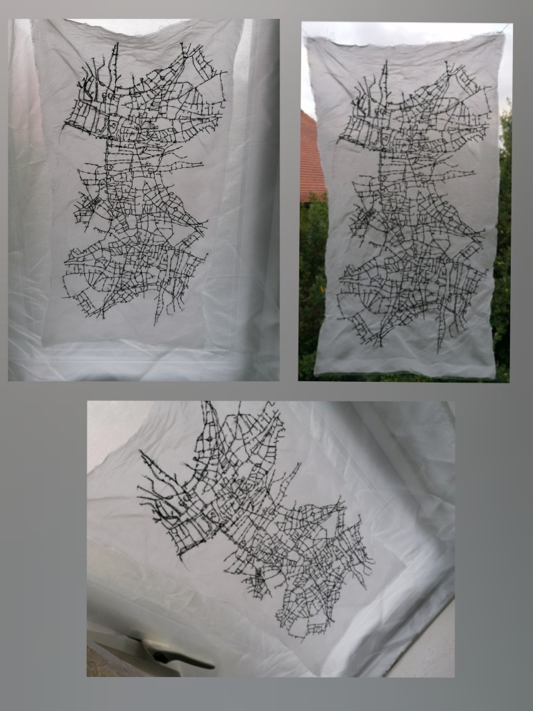 So that’s my target this week, to produce something using my maps and the dissolvable fabrics, sewing with both fabric thread and fine wire. I might decide to dissolve the material or I might choose to keep it as it is. I will be posting the process and any decision making of the work as I do so.